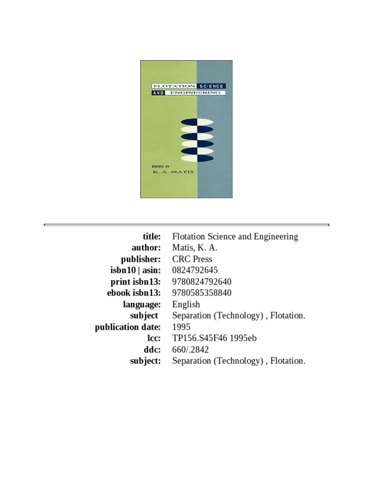 K A Matis Flotation Science And Engineering Crc Press 1994 Foam Adsorption